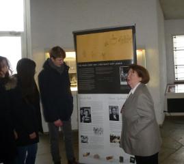 Im Anschluss hatten die Schülerinnen und Schüler Gelegenheit, die Ausstellung „Jewish Child Survivors“ zu besuchen. Die Ausstellungstafeln in der Wandelhalle der Frankfurter Paulskirche zeigten die Biografien von Holocaust-Überlebenden aus aller Welt. Ein Teil der Ausstellung war den jüdischen Überlebenden der Shoah gewidmet, die die Verfolgung der Nazis als Kinder erleiden mussten. Zehn Tafeln beschrieben das Leid der jüdischen Kinder, die zur Vernichtung bestimmt waren, wie sie überlebt haben, aber auch die physischen und psychischen Folgen der schweren Verluste und Entbehrungen. Biografien sowie künstlerische Werke der Kinder bereicherten die historischen Fakten.