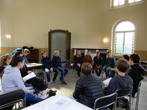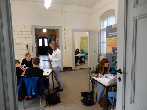Nach der Mittagspause setzten sich die Jugendlichen anhand von Quellen- und Bildmaterialen mit der juristischen Aufarbeitung der „Euthanasie“-Verbrechen am Beispiel des Dresdner Ärzteprozess 1947 auseinander. Am Ende fand eine kleine Auswertungsrunde statt, in der die Schüler ihre Ergebnisse präsentierten und offene Fragen noch beantwortet wurden.