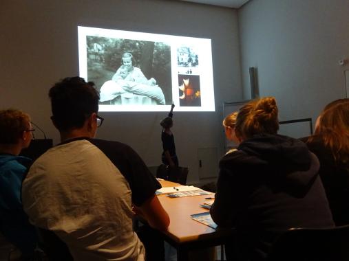 Der Künstler hat sich auf vielfältige Weise mit dem Nationalsozialismus beschäftigt. Ein Druck seiner Bilder „Birkenau“ ist in der Galerie Neue Meister ausgestellt. Besonderes Interesse zeigten die Schüler an dem Abstraktionsgrad der Gemälde. Zu Entstehungsbeginn waren es noch handgemalte Kopien erhaltener Fotos aus dem Vernichtungslager. Einige Zeit später sahen die Werke anders aus. Im Gespräch mit Frau Küster äußerten die Schüler die Vermutung, dass der Holocaust zu furchtbar für eine realitätsgetreue Abbildung gewesen sei. Dieser Erläuterung stimmte Frau Küster zu. Die Verfremdung der Fotomotive habe Richter vorgenommen, weil der Holocaust mit seinen Verbrechen undarstellbar sei. Darüber hinaus erfuhren die Schüler, dass Gerhard Richters Schwiegervater Heinrich Eufinger ein NS-Arzt gewesen war und sich bis 1945 an Zwangssterilisationen beteiligte. Frau Küster konstatierte, dass das vor dem Hintergrund von Marianne Schönfelders Schicksal ein tragischer biographischer Zusammenhang sei. Die Rolle Eufingers wurde Richter erst sehr viel später bekannt. Nach der Restaurierung der Gedenkstätte Großschweidnitz und der Eröffnung der Dauerausstellung wird der Maler eine Kopie seines Bildes „Tante Marianne“ der Gedenkstätte überlassen.