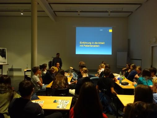 Im letzten Teil des Projekttages gab der Historiker Christoph Hanzig den Schülern eine Einführung in die Arbeit mit historischen Patientenakten der ehemaligen Landesanstalt Großschweidnitz. Er erklärte, dass Gewichtsverlust, Medikamente wie Luminal und bestimmte Stationen wie A 30 auf einen gezielt herbeigeführten Tod deuten könnten. Auch die Daten des Aktendeckels, Meldebögen und so genannte Trostbriefe des Anstaltspfarrers seien hilfreiche Quellen für die Erstellung einer Opferbiographie.