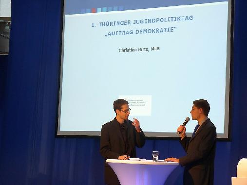 „Besonders spannend war es, einen Überblick über die aktuellen Probleme zu bekommen, aber auch Lösungsversuche mit zu diskutieren“, sagte Steve Carl (15) vom Heinrich-Hertz Gymnasium in Erfurt. Dass jeder im kleinen etwas anstoßen kann haben die Debatten gezeigt. Auch wenn einige Referenten wetterbedingt nicht anreisen konnten, trug die Veranstaltung intensiv dazu bei, das Thema aus vielen Perspektiven zu beleuchten und diskutieren. In Zukunft wird daher jährlich in einer anderen Region Thüringens ein Jugendpolitiktag stattfinden, um aktuelle politische Themen mit Experten aus Politik, Wirtschaft und Wissenschaft zu erörtern.