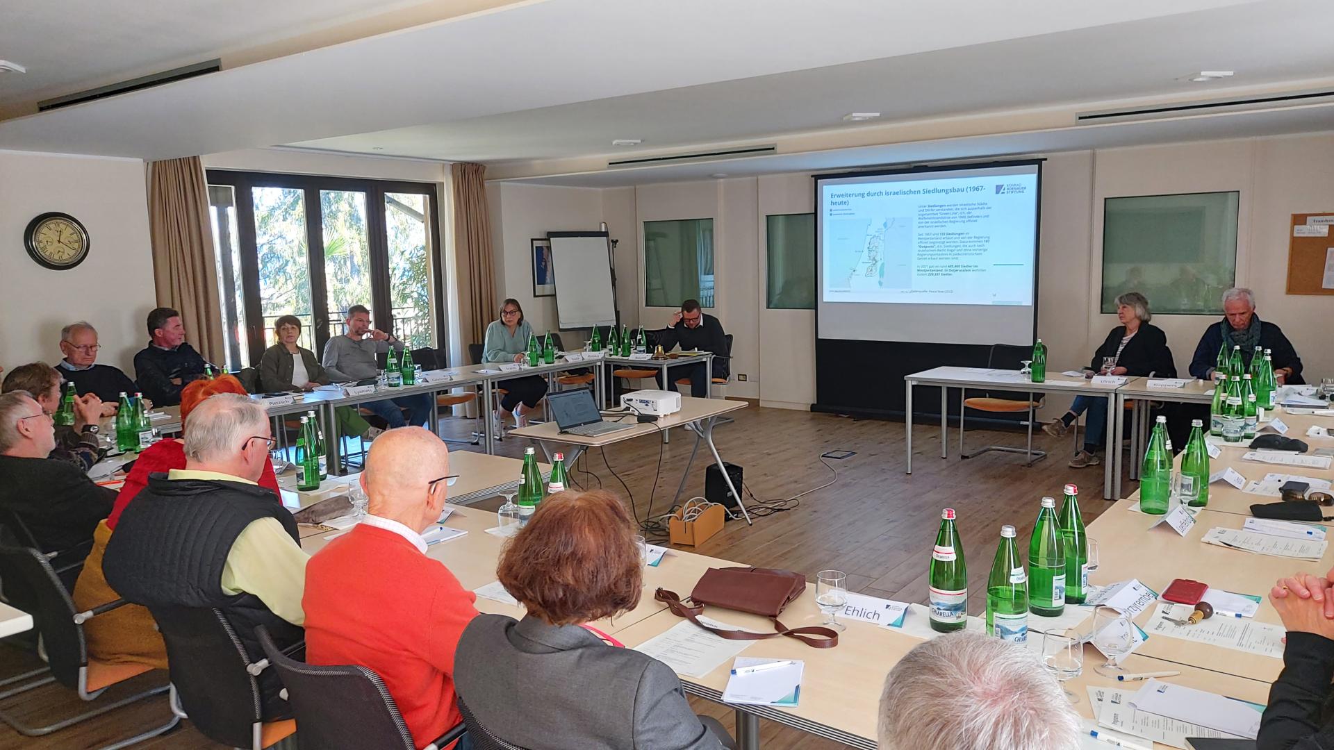 Die inhaltliche Beschäftigung begann mit einem Blick in die Vergangenheit durch Dr. Olaf Glöckner. Er forscht am renommierten Moses Mendelssohn Zentrum für europäisch-jüdische Studien. Ausgehend von der Staatsgründung erklärte er die Geschichte Israels ausführlich. Als zionistisches Einwanderungsland und einzige funktionierende Demokratie im Nahen Osten musste sich Israel auch militärisch früh behaupten. Der Sechs-Tage-Krieg, der Jom-Kippur-Krieg und gewaltsame Konflikte mit Teilen der Palästinenser forderten Israels Rolle in der Region heraus.