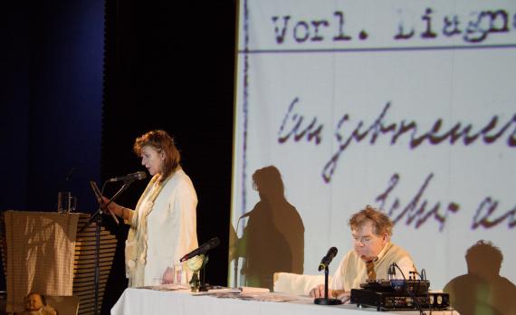 In der theatralen Lesung schlüpften zwei Schauspieler in verschiedene Rollen: in die von Änne, ihrer Mutter und ihrer Brüder, aber auch in die von Tätern, wie den Ärzten und Krankenschwestern – Täter, die die Euthanasie als „Gnadentod“ bezeichneten und als „fortgeschrittene Humanität“ anpriesen. Geräusche, Musik, Licht, Ton, aber auch bearbeitete Dias mit Bildern von Änne und ihrer Familie untermalen und begleiten die Lesung.