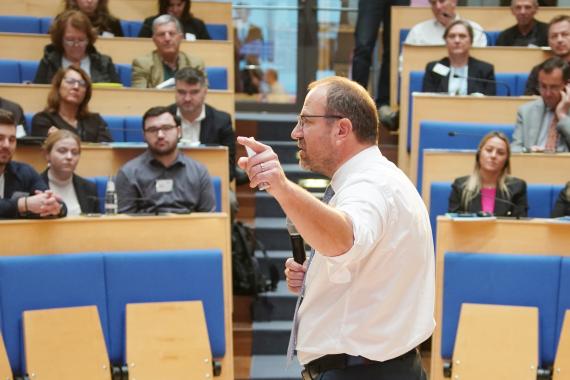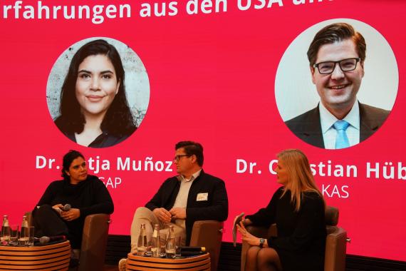 Auf dem Panel unter dem Titel ,,Die US-Präsidentschaftswahl – das größte Comeback aller Zeiten?“ diskutierten Julius van de Laar, internationaler Kampagnen- und Strategieberater, und Eric Wilson, Director des “Center for Campaign Innovation”, über den vergangenen Wahlkampf und dessen Werbekampagnen. In einem Punkt waren sich beide Referenten einig: Personalisierte Wahlkämpfe und Strategien werden immer wirkungsvoller. Dabei spielen Emotionen im Wahlkampf eine wichtige Rolle. ,,Du wirst keine Kampagne nur mit Fakten gewinnen, du brauchst eine Geschichte“, sagte van de Laar. Mit dieser Herangehensweise könne man mehr Wählerinnen und Wähler für sich gewinnen. Wilson betonte, dass ,,Kampagnen dafür da sind ihre Wähler mit Botschaften auszustatten, damit sie selbst die Nachricht verbreiten. Es ist effektiver, wenn ein Freund oder die Familie einen zum Wählen aufruft.“ Es wurde deutlich, dass sich etwas an der Art und Weise, wie man Kampagnen führe, geändert hab und dies sehr effektiv gewesen sei. Ebenfalls habe sich künstliche Intelligenz (KI) nur gering auf den diesjährigen US-Wahlkampf ausgewirkt. Mit Blick auf die bevorstehenden Neuwahlen in Deutschland wurde deutlich, dass es wichtig sei, sich auf simple, aber effektive Themen zu beziehen und somit eine Geschichte zu erzählen. Das Narrativ müsse im Fokus stehen.
