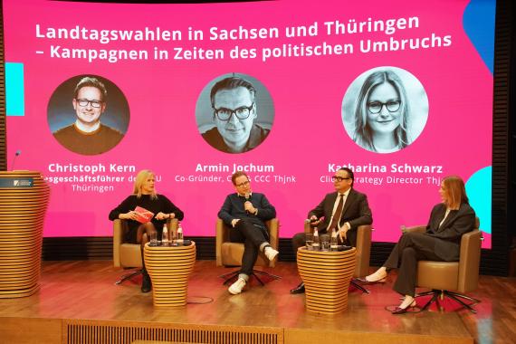 Gerade mit Blick auf die vorgezogenen Neuwahlen 2025 in Deutschland wurde die ein oder andere Strategie auf der IKPK differenziert diskutiert. Die Kampagne zur Landtagswahl in Thüringen im September 2024 setzte auf verschiedene digitale Bausteine. Neben einem Bootcamp ein Jahr zuvor, das die Kandidatinnen und Kandidaten auf den Wahlkampf vorbereitete, setzte die CDU-Landesgeschäftsstelle unter anderem auch auf Mikrokampagnen. „Man muss überraschen und laut sein“, sagte Christoph Kern, CDU-Landesgeschäftsführer in Thüringen. Sie waren mit Wahlplakaten an der Ostsee vertreten, um Thüringer im Urlaub zu erreichen, und gingen neue Vertriebswege. Einige Wahlplakate schafften es in die Bundespresse, denn die Strategie war, „über Berlin ins Thüringer Wohnzimmer zu gelangen“, da lokale Medien in Thüringen mehr und mehr an Präsenz verlören. Der persönliche Kontakt des CDU-Spitzenkandidaten Mario Voigt zu den Bürgern war zudem ein wichtiges Element im Wahlkampf. Auch wenn dies bedeutete, dass er „über 2.000 Bratwürste an den Wahlständen essen musste“, so Kern.