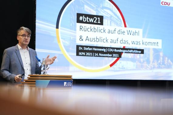 Im zweiten Teil des ersten Konferenztages diskutierten die Referentinnen und Referenten über die Lessons Learned aus dem Superwahljahr 2021: Startpunkt war der Rückblick von CDU-Bundesgeschäftsführer Dr. Stefan Hennewig auf die Bundestagswahl-Kampagne der CDU. Ergänzt wurde die Rückschau von CDU-Landesgeschäftsführer Christian Meyer, der über die Erfolgsfaktoren bei der Kommunalwahl in Niedersachsen berichtete, sowie von Kampagnenmanager Christian Zinke, der Einblick in die Sieger-Kampagne der Landtagswahl in Sachsen-Anhalt gab.
