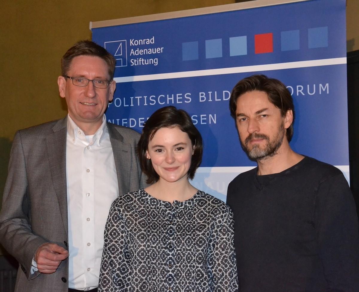 Schülerinnen und Schüler aus Hannover und Umgebung hatten die Chancen, nur einen Tag nach der Kinopremiere mit dabei zu sein, als Lea van Acken, die Hauptdarstellerin des Films, und Regisseur Hans Steinbichler sich den Publikumsfragen und den Fragen von Jörg Jäger, Leiter des Politischen Bildungsforums Niedersachsen, stellten.