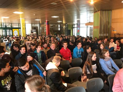 Schülerinnen gehen emotional mit, es ist still im Publikum bis zum letzten Satz des Schriftstellers.
