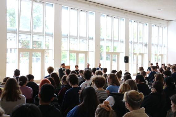Dass die Veranstaltung sehr dynamisch und interaktiv verlief, war der regen Partizipation der Schülerinnen und Schüler des Canisius-Kollegs zu verdanken. Für sie waren insbesondere die Fragen, warum Deutschland nach der völkerrechtswidrigen Annexion der Krim keine entschiedeneren Maßnahmen gegenüber Russland eingeleitet hat und die Frage nach einer Wiedereinführung der Wehrpflicht von Bedeutung. Auch einige anwesende ukrainische Schülerinnen und Schüler konnten mit der Frage, weshalb Hürden in Bezug auf Ausbildung und Studium für sie bestehen, einen kritischen Akzent setzen.