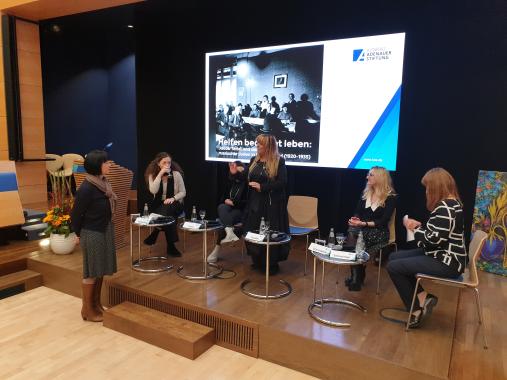 Themen der Gesprächsrunde waren insbesondere jüdische Wohlfahrtsstrukturen in Deutschland, die Rolle jüdischer Verbände bei der Identitätsbildung sowie die aktuelle Situation von Juden in Deutschland. Laura Cazes und Anna Staroselski berichteten ausführlich über die Arbeit und Zielsetzungen der Zentralwohlfahrtsstelle der Juden bzw. der Jüdischen Studierendenunion, bspw. über die Integration von Juden in die Gesellschaft als Langzeitaufgabe oder über das Empowerment junger Juden, um jüdische Perspektiven in gesellschaftlichen Diskussionen platzieren zu können. Diana Sandler informierte eingehend über ihre Arbeit als Vorsitzende einer von ihr gegründeten jüdischen Gemeinde und vergaß dabei auch nicht, auf verschiedene damit verbundene Herausforderungen hinzuweisen. Bezüge zum Leben Jacob Teitels und der Ausstellung zur heutigen Zeit stellte Dr. Elena Solominski in ihren Redebeiträgen dar. Deutlich wurde im Verlauf des Gesprächs herausgestellt, dass Antisemitismus ein reelles Problem für Juden in Deutschland darstellt.