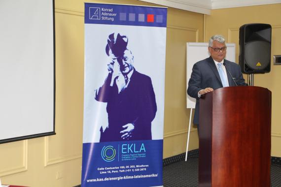 Die Veranstaltung begann mit einer Einleitung des Auslandsbüroleiters der KAS Peru, Herr Sebastian Grundbeger, welcher betonte, dass die in der Rede stehende Buchvorstellung dank der koordinierten Bemühung zweier Regionaler Programme der KAS zustande kommen konnte: das „Programm der Politischen Partizipation Indígena in Lateinamerika“ (PPI) mit Sitz in La Paz und das „Programm zum Klimawandel und Energiesicherung“ (EKLA) mit Sitz in Lima. Ferner hieß er alle Teilnehmer, die in Stellvertretung für den Leiter des PPI, Herr Maximilian Hedrich, dem die Teilnahme nicht möglich war, willkommen. Er legte den Nachdruck darauf, dass in alle Anhörungsprozesse die Stimmen der Indigenen Völker und deren Vorsitzende einbeziehen werden müssen. Ferner erinnerte er auch daran, dass das PPI mit Indigenen und nicht-Indigenen Experten aus mehr als 10 Ländern der Region im Rahmen einer Evaluation und Analyse seit 2011 zusammenarbeitet. Diese haben die Aufgabe entsprechend, auf sich ändernde Bedürfnisse der Indigenen Agenda in Lateinamerika mit Aktionen zu antworten, jährlich mitgestaltet.