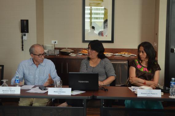 Bernardo Ponce, Regionalkoordinator des PPI, begrüβte zwei neuen Mitglieder des Expertenrats, Guadalupe Peralta aus Mexico und Diego Iturralde aus Ecuador. Guadalupe ist Expertin für indigene Rechte, hat einen Master in Regionalstudien am Forschungsinstitut Dr. José Ma. Luis Mora und ist Akademikerin der internationalen Beziehungen an der autonomen nationalen Universität von Mexico (UNAM). Diego ist Anwalt und Anthropologe, spezialisiert in Rechtsanthropologie und Rechte indigener Völker.