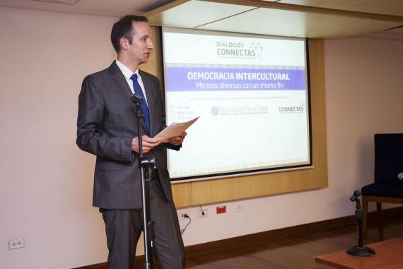 Eingebettet war die Video-Präsentation in die Veranstaltung „Interkulturelle Demokratie, unterschiedliche Sichtweisen mit dem gleichen Ziel“, die mit Begrüßungsworten der Dekanin der Fakultät für gesellschaftliche Kommunikation für den Frieden der Universität Santo Tomás, María Ligia Herrera Navarrolas eingeleitet wurde. Im Anschluss begrüßte Dr. Georg Dufner, Leiter des Büros der KAS in Bolivien und des KAS-Regionalprogramms PPI die Teilnehmer. Er erläuterte die Reichweite und die Arbeit des PPI und die Ziele des vorgestellten Videos und dankte der Plattform für journalistische Innovation CONNECTAS und der Universität Santo Tomás.