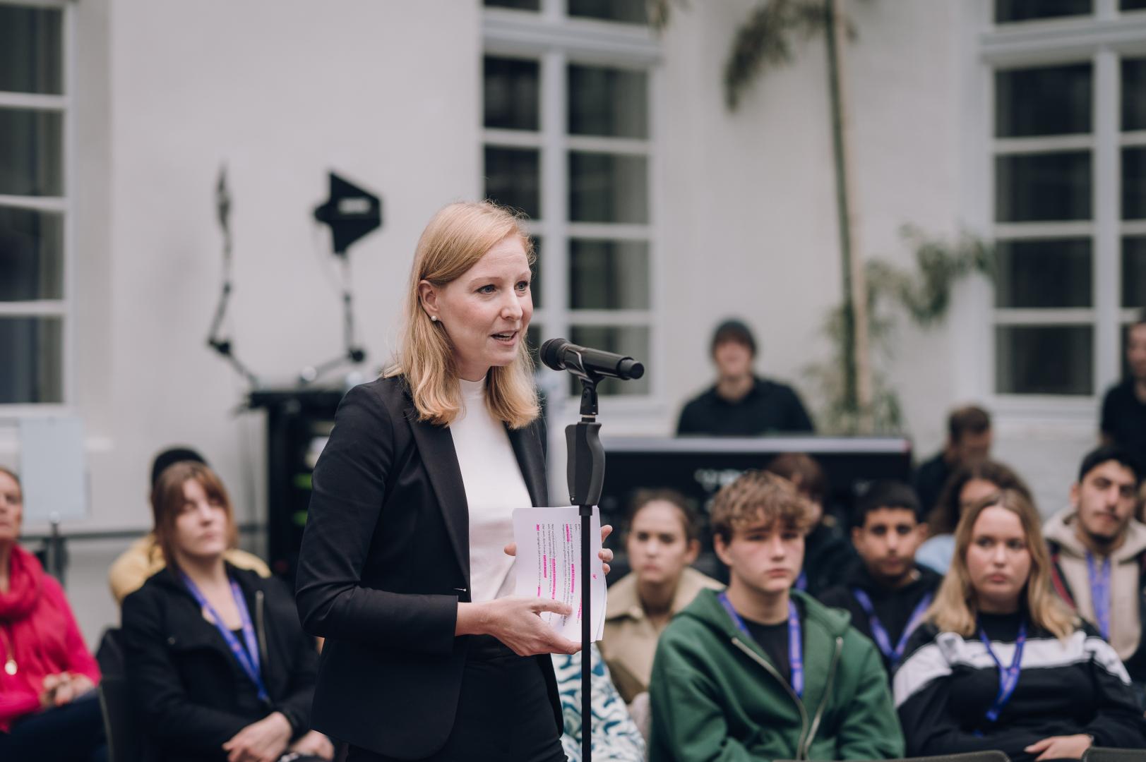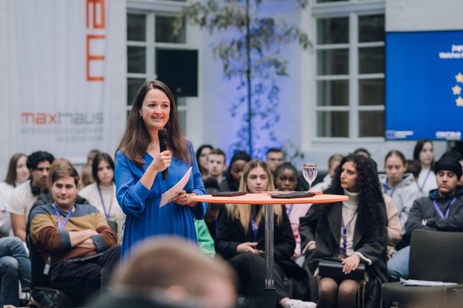 Zuletzt richtete die Moderatorin Sandra Wahle ihre Worte direkt an die Jugendlichen. In ihrem Abschlussstatement betonte sie die Bedeutung der Wahlbeteiligung junger Menschen und ermutigte die Schülerinnen und Schüler, sich zu informieren und bei der Europawahl im kommenden Jahr 2024 ihre Stimme für die Mitglieder des Europäischen Parlaments abzugeben, um diese demokratische Möglichkeit zur Gestaltung der Zukunft zu nutzen.