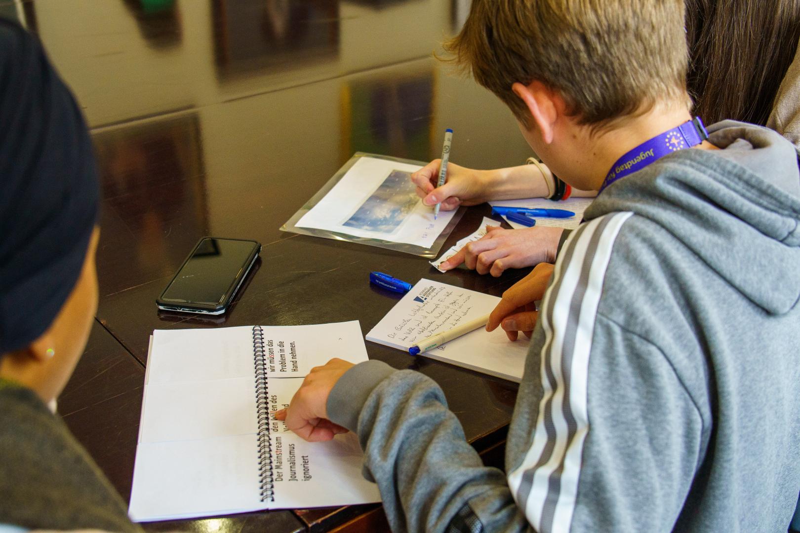 Im Escape Room „Charlies Botschaft“ unter der Leitung von Rebecca Lenz, Ruth Porstmann und Leonie Augustin mussten die Jugendlichen verschiedene Rätsel lösen, um die Rede der Kommissionspräsidentin wiederzufinden. So machten sie sich mit den Vorgängen in der Europäischen Union vertraut und setzten sich spielerisch mit ihrer persönlichen Vision für Europa auseinander.