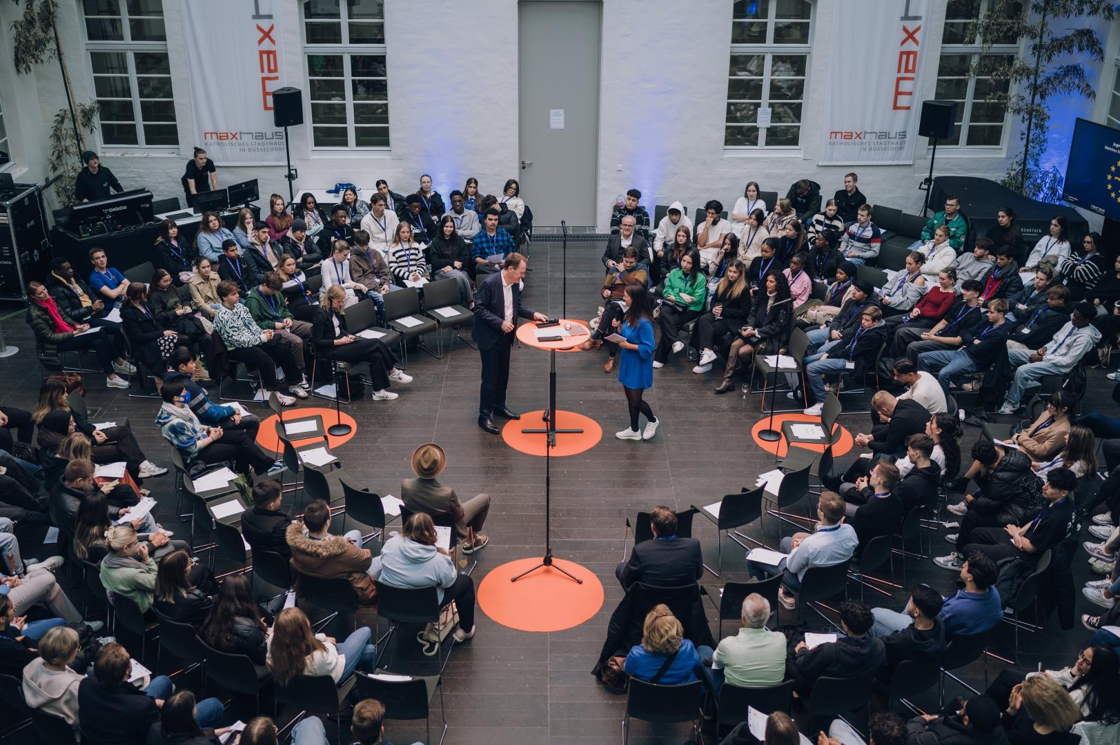 Der zweite Jugendtag für Europa begann inhaltlich mit einer Videobotschaft von Nathanael Liminski, dem Minister für Bundes- und Europaangelegenheiten, Internationales sowie Medien des Landes Nordrhein-Westfalen und dem Leiter der Staatskanzlei. In seinem Statement ermutigte er die Jugendlichen dazu, sich aktiv zu engagieren und ihre individuellen Vorstellungen von Europa zu realisieren. Darüber hinaus unterstrich er die Bedeutung dieser Veranstaltung, indem er betonte: "Nehmen Sie die heutigen Impulse mit und teilen Sie sie mit Ihren Freunden und Ihrer Familie."