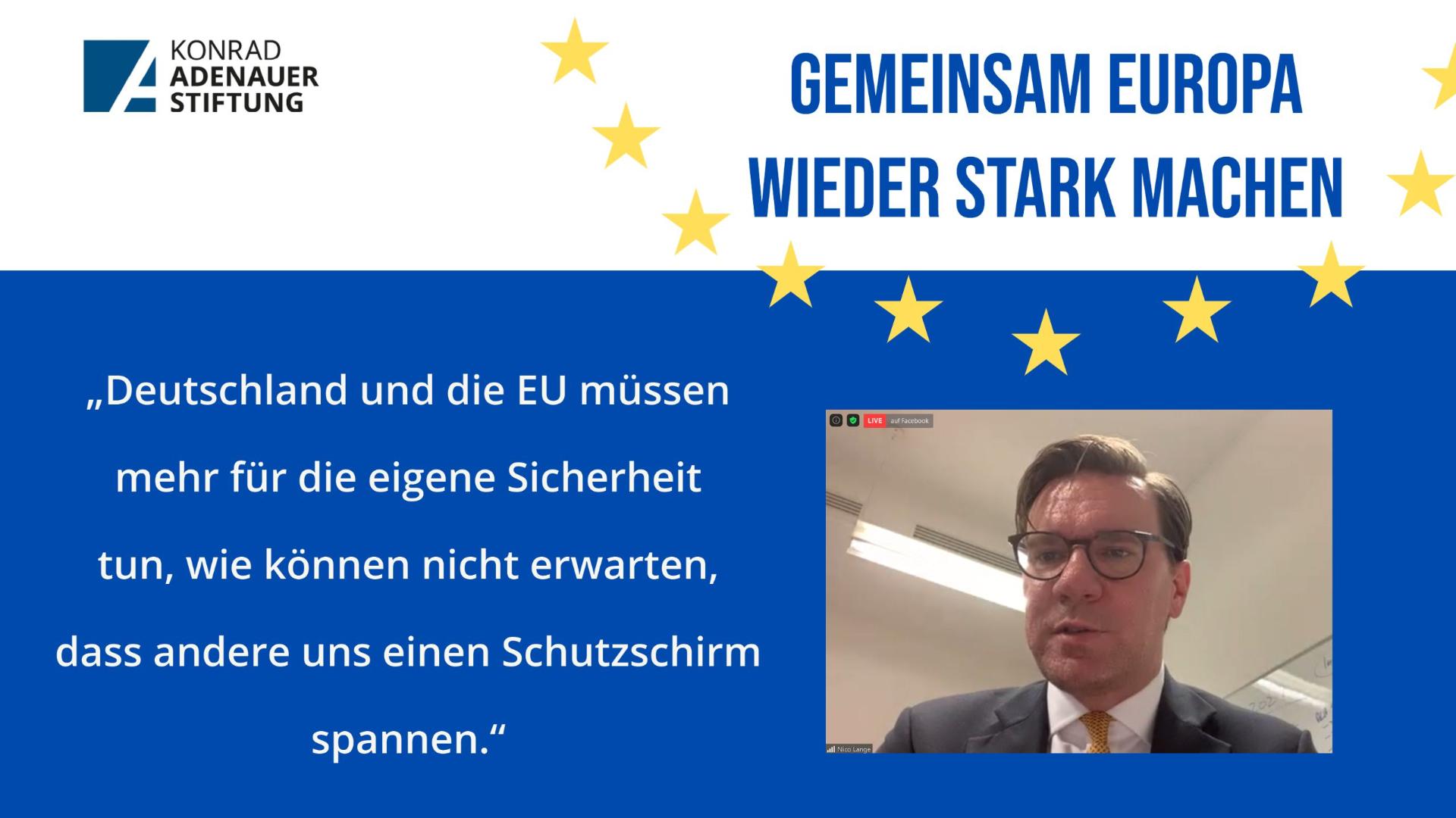 Gemeinsame europäische Rüstungsprojekte in Industrie und Technologie würden gebraucht, um in einigen Bereichen Anschlussfähigkeit und in Anderen Führungskraft zu gewinnen. Das derzeitige Budget des Verteidigungsministeriums würde deswegen schwerpunktmäßig im europäischen Bereich eingesetzt werden. Grundsätzlich sei Deutschland zum Handeln verpflichtet, führte Lange aus. Deutschland müsse mehr Verantwortung übernehmen und investieren – und auch mal die Initiative ergreifen: „Derzeit wollen wir nur zum Tanzen aufgefordert werden und überlegen dann, ob wir mittanzen oder lieber an der Musik rummäkeln.“