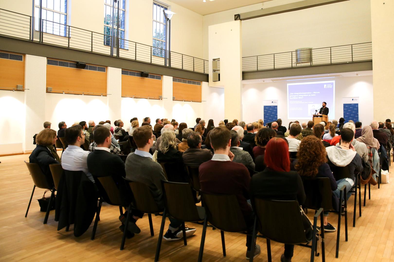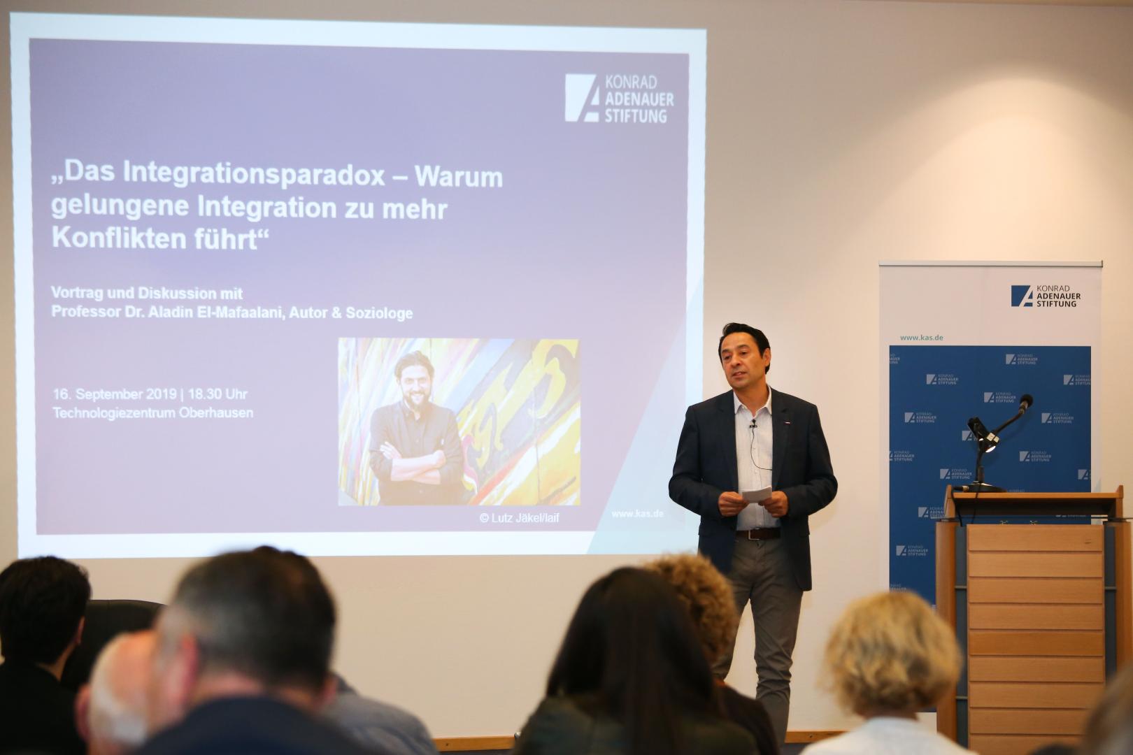 Prof. El-Mafaalani beginnt seinen Vortrag mit einem Paradox – denn seine Aussagen, die er aus seiner jahrelangen Forschung zum Thema abgeleitet hat und schon lange veröffentlicht, werden ganz unterschiedlich wahrgenommen. 2013 wurde er als Pessimist gesehen, als er eine Vorlesung zu dem Thema hielt. Jetzt ist er der Optimist, „obwohl ich noch genau die gleichen Worte sage.“ Seine Erkenntnisse basierten auf Daten, mit denen auch andere Autoren arbeiteten – auch wenn diese teilweise Horror-Szenarien malten. Er ist der Überzeugung: „Aus den Büchern lernt man immer mehr über den Autor als über die reale Gesellschaft in Deutschland.“