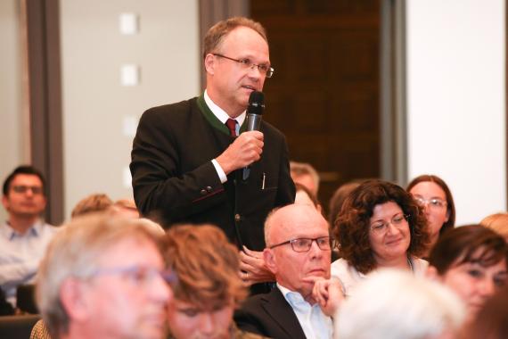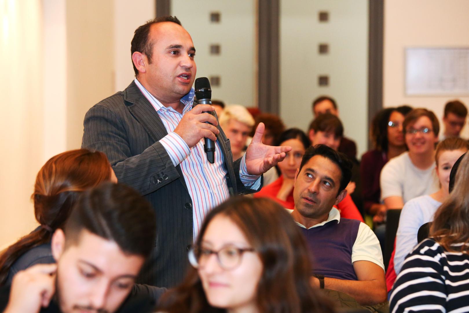Man solle sich darüber streiten, wie man streiten möchte: „Der Streit ist das Resultat einer gewünschten Entwicklung – denn eine offene Gesellschaft ist nicht gemütlich.“ Aufpassen müsse man jetzt, dass bei den verbleibenden Menschen auf dem Boden keine Resignation einkehre und sich nicht das Bild einstelle, sie wären selbst schuld, dass sie nicht am Tisch sitzen. In der anschließenden Diskussion unterhält er sich angeregt mit den Gästen über das Wir-Gefühl, Konflikte und das Leben in einer Gesellschaft ohne Tisch. Er schließt mit einem positiven Appell: „Eine offene Gesellschaft verlangt allen etwas ab – doch sie hat eine ganz besondere Dynamik.“