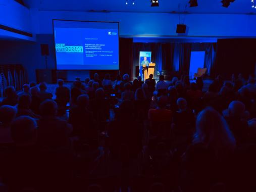 Dr. Felor Badenberg führte mit Blick auf die Ergebnisse der Bundestagswahl an, dass wir „als Demokratinnen und Demokraten keinen Grund zur Selbstzufriedenheit haben“. Zwar sei die Wahlbeteiligung erfreulich hoch gewesen, jedoch wären viele Stimmen auch an die politischen Ränder gegeben worden, sodass der linke und rechte Rand nun über eine sogenannte Sperrminorität verfügen würde. Damit könnten Vorhaben, für die beispielweise eine Änderung des Grundgesetzes benötigt würde, blockiert werden, da diese mit einer Zweidrittelmehrheit beschlossen werden müssten.