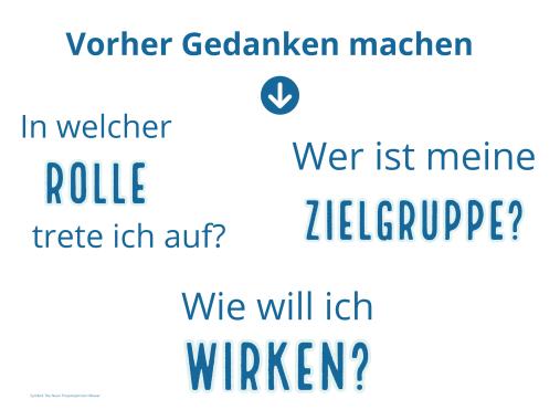 Die Körpersprache hat einen wichtigen Einfluss darauf, wie wir wirken. Generell sollte die Haltung aufrecht sein, vor allem, wenn man gerade spreche. Ein wichtiges Instrument, um mitreißend zu sprechen, sind außerdem die Hände: „Zeigen Sie Größen, Emotionen oder Unterscheidungen mit den Händen – wir vertrauen Menschen eher, wenn Sie gestikulieren.“ Die Art und Weise müsse natürlich zur eigenen Persönlichkeit passen – und zum jeweiligen Wirkungsziel: „Das kann jeden Tag ein anderes sein.“ Deswegen solle man sich vor jeder wichtigen Videokonferenz fragen, in welcher Rolle man auftritt und wer die Zielgruppe ist, um im Anschluss zu definieren, was man vermitteln will: „Jeder von uns hat viele Rollen, die er authentisch ausfüllen kann.“