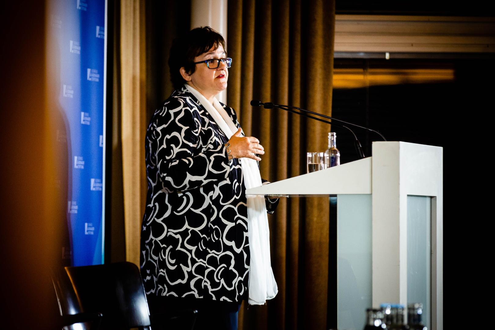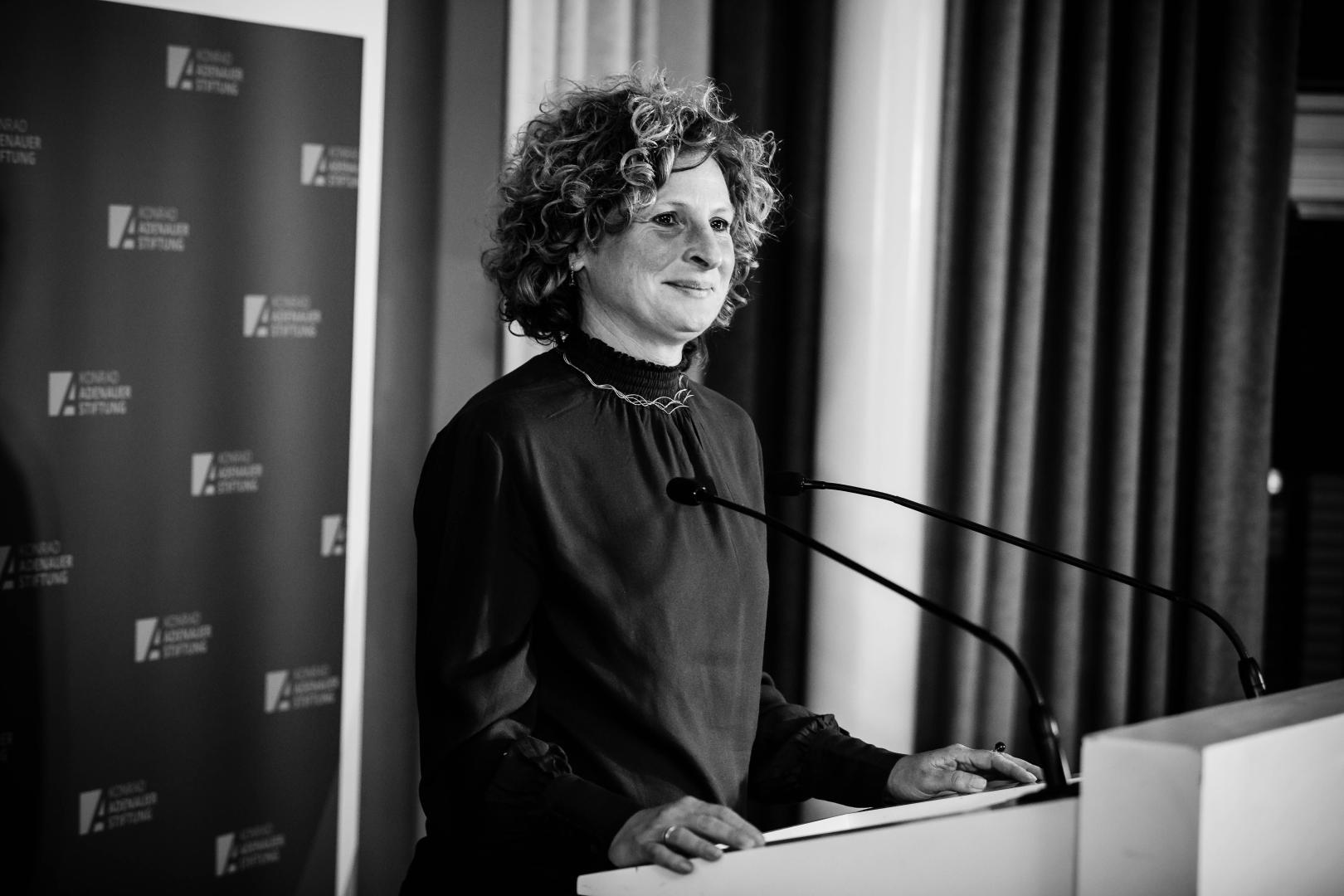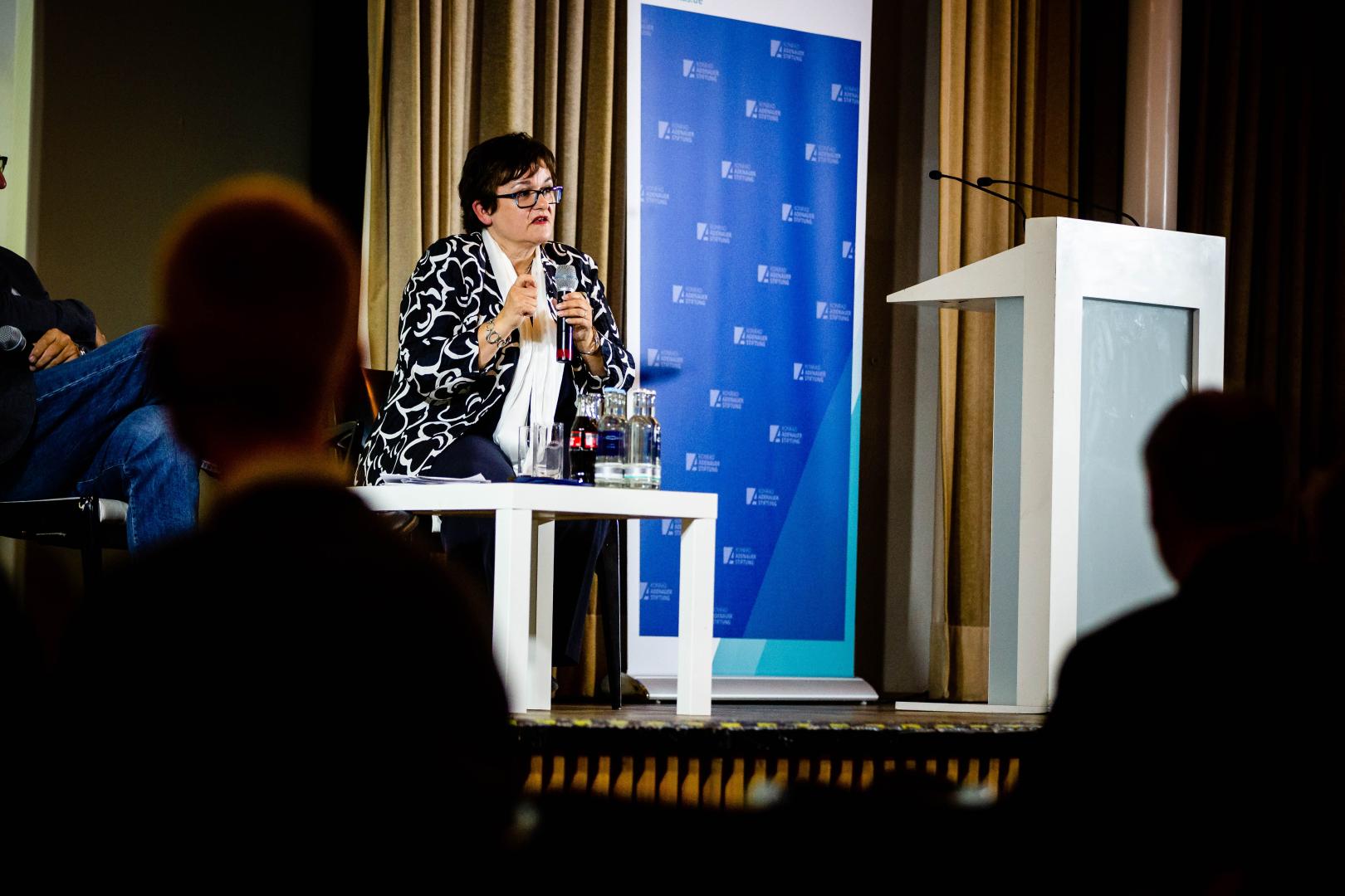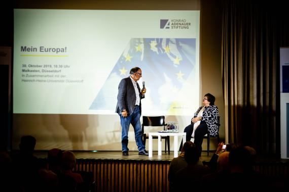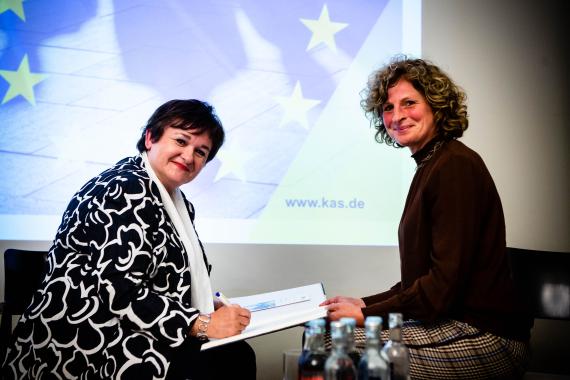 Ihren Vortrag beginnt Lautenschläger mit einem Zitat von Konrad Adenauer: „Ich bin Deutscher und bleibe Deutscher, aber ich war auch immer Europäer und habe als solcher gefühlt.“ Dieses habe sie immer inspiriert. Die wachsende Skepsis der EU gegenüber beunruhige sie: Wenn man sich immer mehr zurückziehe in die eigene Echokammer, wo man nur in seinen Meinungen bestätigt werde, sei das gefährlich: „Wenn die Menschen das Gefühl haben, dass ihre Stimme kein Gehör mehr findet, ist es leicht für Populisten, einfache Lösungen zu präsentieren.“ Doch diese würden die vielen Vorteile leugnen, die die EU für Europa gebracht habe.