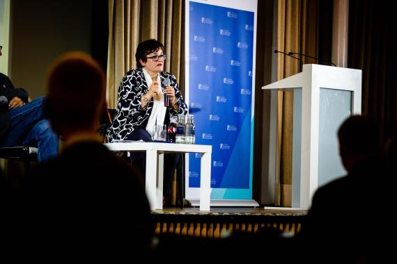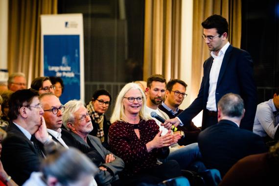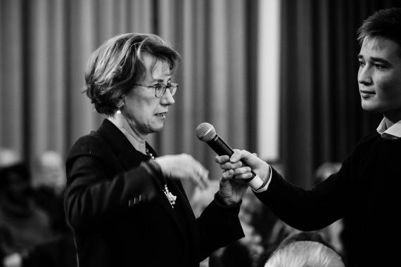 Im Anschluss haben die Gäste die Möglichkeit, Sabine Lautenschläger Fragen zu stellen. In der Diskussion geht es um die Aufgaben der EZB. Die Aufgabe sei es, für Preisstabilität zu sorgen, sagt Lautenschläger. Politische Aufgaben wie eine Regierung könne und solle die EZB nicht wahrnehmen, da sie nicht durch eine Wahl demokratisch legitimiert sei. Die EU sei vielfältig, doch das sei auch ihre Stärke. Sabine Lautenschläger blickt positiv in die Zukunft: Man brauche Entschlossenheit und die „Fähigkeit, die Werte und Ziele der EU innerhalb der globalen Gesellschaft durchzusetzen.“