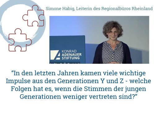 Diese Fragen diskutierte Dr. Anabel Ternès, Expertin für Digitalisierung und Unternehmerin, in einer digitalen Veranstaltung mit den Zuschauerinnen und Zuschauern. Zunächst begrüßte Simone Habig, die Leiterin des Regionalbüros Rheinland der Konrad-Adenauer-Stiftung, die Zuschauerinnen und Zuschauer: „In den letzten Jahren kamen viele wichtige Impulse aus diesen Gruppen – nicht immer sind sie für die Gesellschaft bequem. Welche Kompetenzen genau besitzen die jungen Generationen?“