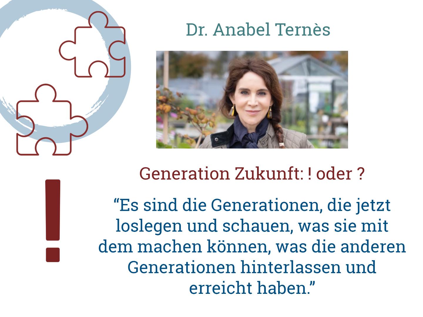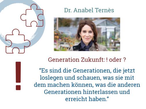 Ternès spricht auch bekannte Vertreterinnen und Vertreter der Generationen an, zum Beispiel die Fridays For Future Aktivistin Greta Thunberg. Eine Zuschauerin fragt, ob im Zuge der Pandemie Klimaschutz gerade unwichtiger werde. Ternès betont: „Es gibt kein entweder oder – Klimaschutz steht auf einem anderen Gleis, ist dadurch aber nicht weniger wichtig.“ Das betreffe übrigens nicht nur die jungen Generationen, sondern alle.