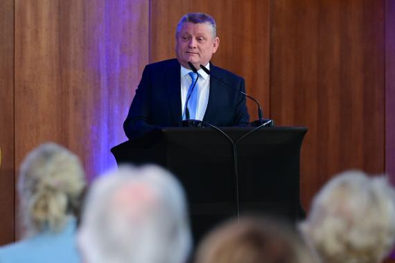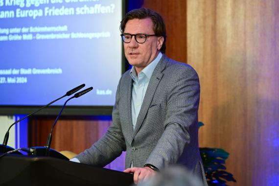 Nach der Begrüßung begann die Veranstaltung mit einer Einführung von Schirmherr Hermann Gröhe MdB. Der stellvertretende Vorsitzende der CDU/CSU-Fraktion bot einen fundierten Einblick in die aktuellen Entwicklungen in der Ukraine. Dabei bezog er eine klare Position und betonte die uneingeschränkte Solidarität und Unterstützung für die Ukraine: „Die Ukraine verteidigt in diesem Krieg auch Selbstbestimmung und Demokratie – und damit die Werte Europas.“ Gröhe hob die Notwendigkeit hervor, über die Verantwortung Deutschlands und Europas für die Sicherheit und die Unterstützung der Ukraine zu sprechen. Außerdem betonte er die Bedeutung des öffentlichen Dialogs: "Putin spielt mit der Angst der Deutschen, daher ist der öffentliche Austausch von entscheidender Bedeutung."