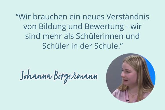 In einer Umfrage unter den Zuschauerinnen und Zuschauern zeigt sich, dass der Großteil findet, dass die Interessen von Jugendlichen nicht ausreichend beachtet wurden. Das sieht Johanna Börgermann ähnlich: „Solange man uns nicht als Personen wahrnimmt, die nicht nur Bildung erfahren, sondern auch ein Recht darauf haben, diese zu gestalten, wird sich nichts ändern.“ Kai Lanz plädiert dafür, dass es „mehr Politiker*innen gibt, die kreieren statt reagieren. Ich habe das Gefühl, dass das Verantwortungsgefühl fehlt.“ Aber: Durch die aktuelle Situation würden sich viele junge Menschen mit Demokratie beschäftigen, sagt Börgermann. Zuletzt fragt eine Zuschauerin, wie man Schülerinnen und Schüler gerade unterstützen könne. Lanz empfiehlt, diese Frage direkt zu stellen und Personen im Umfeld zu fragen, was man für sie tun könne. Börgermann ergänzt, es sei wichtig, Verständnis zu zeigen, sich hinter die Schülerinnen und Schüler zu stellen und die Missstände weiterzutragen.