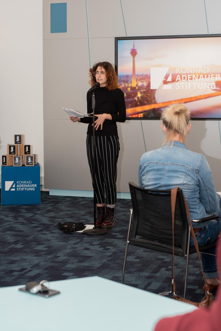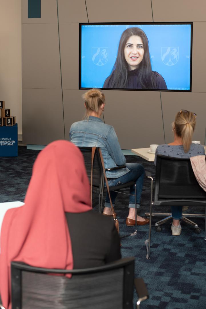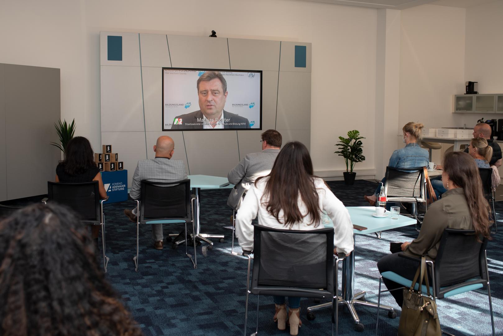Als nächstes richtet sich Patrick Albrecht vom Nordrhein-Westfälischen Lehrerverband an die Gäste: Es sei wichtig, dass Menschen sich für die Akzeptanz verschiedenster Kulturen stark machten. Deswegen sei die Qualifizierungsmaßnahme wichtig: „Ich danke allen Teilnehmern, dass Sie zusätzlich zur anstrengenden Alltagsarbeit die Zeit und Kraft investieren – vor allem in der Pandemie.“ Auch die Leiterin des Regionalbüros Rheinland der Konrad-Adenauer-Stiftung, Simone Gerhards, dankt den Lehrkräften: „Ich freue mich sehr, dass Sie alle sich dafür einsetzen, interkulturelle Prozesse an ihren Schulen umzusetzen und sich so für unsere vielfältige Gesellschaft engagieren. Die Umsetzung der Konzepte ist ein spannender nächster Schritt.“ Es sei wichtig, für alle Schülerinnen und Schüler Bildungswege und Chancen zu ermöglichen. Dabei spielten Lehrkräfte eine besonders wichtige Rolle.
