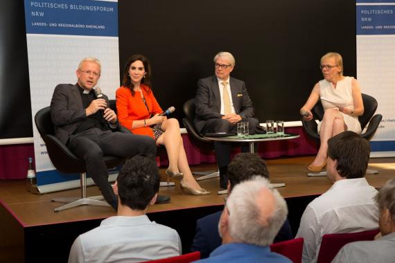 „Mit Vertrauen in die Zukunft“ – das ist der Ansatz der Diskussionsreihe „Köln und Köpfe“, die nun zum dritten Mal in Köln stattfindet. Unter der Schirmherrschaft von Karsten Möring MdB diskutierten Monsignore Prof. Dr. Peter Schallenberg und Dr. Anabel Ternès die Perspektiven und Einflüsse der Wirtschaft. Simone Habig, die Leiterin des Regionalbüros Rheinland begrüßte das Publikum, bevor Schirmherr Möring das Wort ergriff.