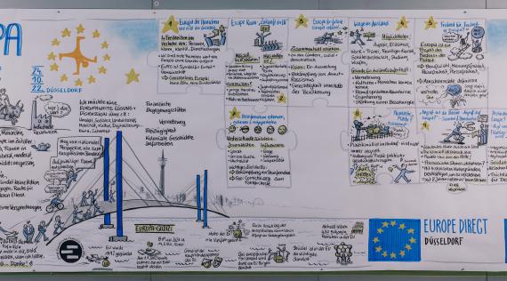 Europa findet nur in Brüssel und Straßburg statt? Nein, sagte der Oberbürgermeister Dr. Stephan Keller bei der Begrüßung: „In Düsseldorf leben Menschen aus über 180 Nationen friedlich miteinander. So ist Europa auch hier spürbar.“ Er forderte die Jugendlichen dazu auf, sich einzumischen und so ihre eigene Vorstellung von Europa zu verwirklichen.