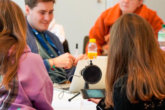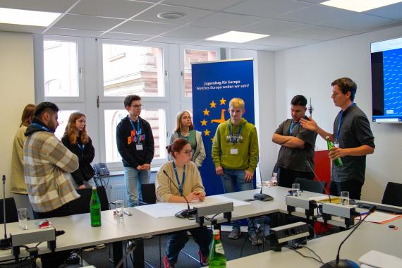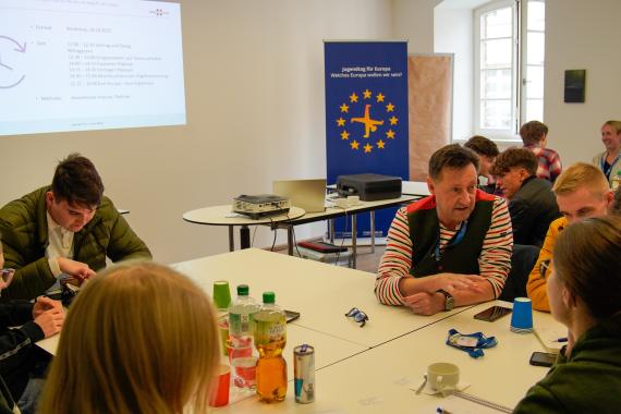 Nach der Einführung fanden sich die 150 Schüler*innen in Workshop-Gruppen zusammen, um gemeinsam über verschiedene Aspekte von Europa zu diskutieren. In den Workshops ging es unter anderem um den Krieg in der Ukraine, Desinformation, Plastikmüll, die europäische Asyl- und Flüchtlingspolitik und die Überwindung von Grenzen in Europa.