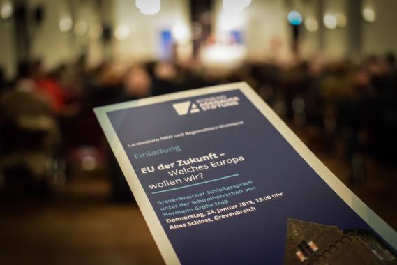 Im Anschluss richtet der Schirmherr des Schlossgespräches Hermann Gröhe MdB das Wort an die Gäste. Er spricht den Zeitpunkt der Veranstaltung an – vier Tage, nachdem im britischen Unterhaus gegen den Brexit-Vertrag gestimmt wurde und vier Tage nach dem Vertrag von Aachen. „Wie geht es weiter mit Europa?“, fragt er das Publikum und ergänzt: „Wir müssen die Idee von Europa weitertragen – nicht mit Konservierung, sondern mit Aktualisierung.“ Die Europawahl werde als einen Pro/- oder Contra-Wahl für Europa gesehen – „wir können aber nur gewinnen, wenn wir fragen: Wie soll die EU zukünftig gestaltet sein?“