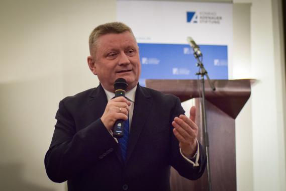 Kaum ein Thema könnte aktueller und relevanter, aber auch brisanter sein, sagt der Landesbeauftragte für Nordrhein-Westfalen der Konrad-Adenauer-Stiftung, Dr. Ludger Gruber in seinem Grußwort an die knapp 200 Gäste. „Vor jeder Wahl sagen wir, diese ist die wichtigste Wahl – doch die Europawahl im Mai ist die Erste, wo es wirklich stimmt“, erklärt Gruber und identifiziert Unterschiede, die es im Vergleich zu der letzten Europawahl gibt: „Inzwischen gibt es Kräfte, die die EU angreifen.“ Doch auch Gleichgültigkeit sei ein Problem – inzwischen könnten Wahlen sogar gefährlich für die Demokratie werden.