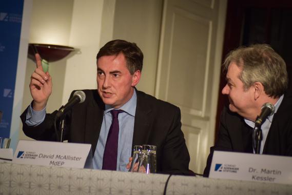 In der anschließenden Diskussion mit Dr. Martin Kessler von der Rheinischen Post und den Gästen geht es um den Brexit, Populismus und die anstehende Wahl, bei der Spitzenkandidaturen für die Kommissionspräsidentschaft wichtig seien. McAllister plädiert dafür, seine Mitmenschen zu mobilisieren und die Wahlbeteiligung bei den Europawahlen zu steigern: „Wir können uns diese Debatte nicht mehr leisten. Es gibt Begeisterung für die EU, aber keine Begeisterung für die Bürokratie.“