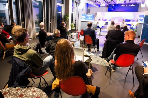 Über den Dächern von Düsseldorf mit Blick auf den Rheinturm stellen bei „Konkret! Klimaschutz vor Ort“ mehrere Referenten ihre konkreten Pläne für mehr Klimaschutz durch Technologien im Alltag vor. Wie bewegen wir uns in Zukunft nachhaltig von Ort zu Ort? Klar wird: Sowohl das Verhalten der Menschen als auch die Infrastruktur muss sich wandeln. Wer ein Haus besitzt, kann etwas zum Klimaschutz beitragen - an welcher Stelle man ansetzen kann, erklärt Prof. Eike Musial von der Hochschule Düsseldorf interessierten Zuschauern. In der letzten Veranstaltungsrunde spricht sich Mathias Thomas, Geschäftsführer TUP, für mehr Innovation aus. Viele Start Ups hätten gute Ideen, die aber in der Umsetzung scheiterten, weil sie Politik die Rahmenbedingungen nicht schaffe.