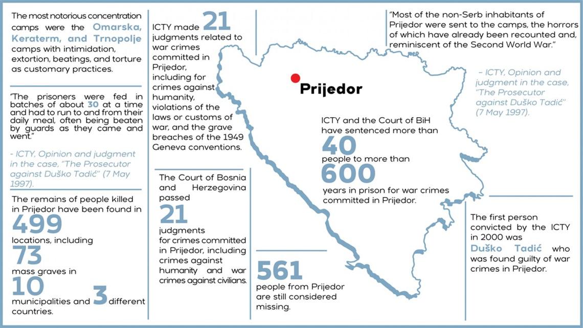 Die Konferenz wird die Bedeutung rechtlich gesicherter Fakten aus ICTY/IRMCT-Urteilen zu Prijedor-Kriegsverbrechen aus völkerrechtlicher Sicht untersuchen. Zu den Diskussionsteilnehmern gehören der ehemalige ICTY-Staatsanwalt Alan Tieger, IRMCT-Vertreter, der Journalist Roy Gutman, der über den Bosnienkrieg berichtete, die Dokumentar-Filmemacherin Maggie O'Kane, der Fotograf Dekoninck und der Prijedor-Zeuge Fikret Alić.