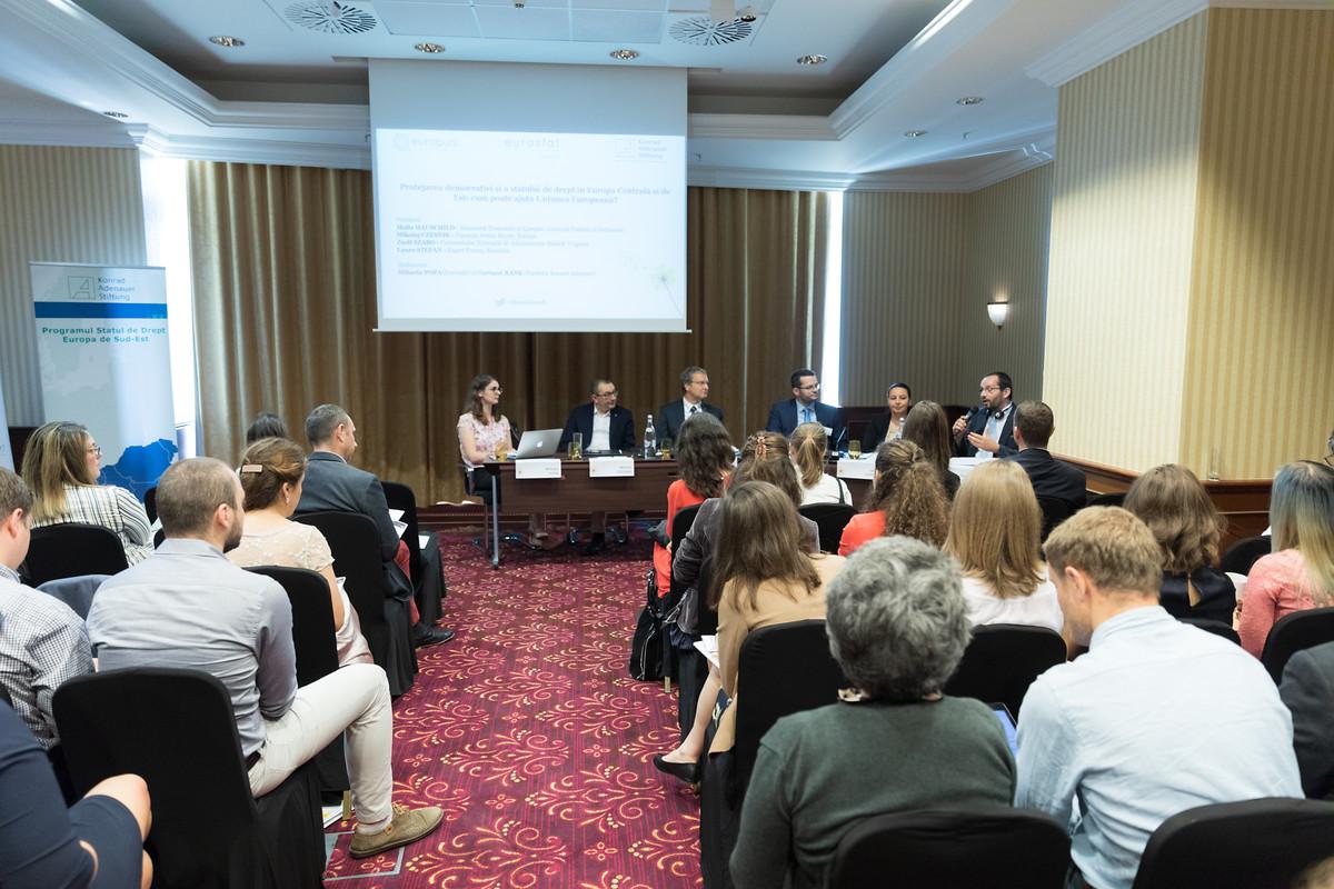 Angesicht der jüngsten Entwicklungen in einigen EU-Mitgliedstaaten in Ost- und Mitteleuropa hinsichtlich der Gefährdung rechtstaatlicher Prinzipien und der Erosion demokratischer Werte führte das Rechtsstaatsprogramm Südosteuropa der Konrad-Adenauer-Stiftung (RSP SOE) eine öffentliche Diskussionsveranstaltung in Bukarest durch, um mit Experten sowie rumänischen Bürgern die Debatte über die Bedeutung des Rechtsstaats zu führen. Die Erosion des Rechtsstaats als eine neue, „existenzielle“ Krise der EU gewinnt scheinbar an Fahrt, indem Staaten wie Rumänien und Ungarn den bereits von Polen gewählten Weg um-fassender Justizreformen mit dem Ziel einer stärkeren Kontrolle der Justiz durch die Exekutive wählen. Gleichzeitig versucht die Europäische Kommission ihre Hebelkraft in Bezug auf die Einhaltung der gemeinschaftlichen Werte zu stärken. Nun will die EU die Vergabe von Fördermitteln an die Einhaltung des Rechtstaats festmachen.