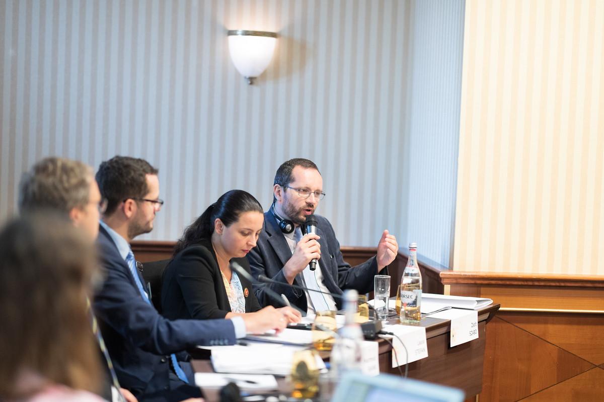 Dr. Malte HAUSCHILD, Referatsleiter der Abteilung für Europäische Angelegenheiten und Rechtstaat im deutschen Bundesministerium für Wirtschaft und Energie, konstatierte, dass die EU sich in einer „Zeit der Herausforderungen“ und „instabilen Situation“ befinde. Der Mechanismus des Art. 7 fuße auf politischem Dialog, denn niemand habe sich wohl früher vorstellen können, dass Rechtsstaatstandards verletzt würden, nachdem neue Staaten der EU beitreten. In etwas optimistischerem Ton erklärte Herr Hauschild, dass - obwohl der institutionelle Rahmen der EU schwach sei - die EU Instrumente in anderen Bereichen besitze: EU-Fördergelder. Er berichtete von aktuellen Vorschlägen, Zahlungen bestimmter EU-Gelder an die Einhaltung rechtsstaatlicher Standards zu binden. Zugleich sei eine gerechte Ausgabenpolitik im EU-Haushalt, welcher letztich aus den Steuergeldern der EU-Bürger besteht, im Eigeninteresse aller. Auch unabhängig davon sei die Einhaltung von Rechtsstaatsstandards für die Wirtschaft wichtig: wenn ein Justizsystem instabil sei, verlassen ausländische Investoren tendenziell eher das betreffende Land.