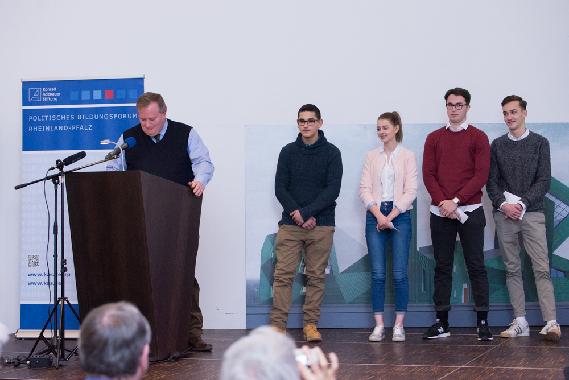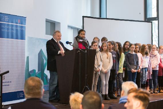 Gegen das Vergessen anzutreten ist auch die Motivation des Schirmherrn des Projekts Dr. h.c. Johannes Gerster. Er erinnerte daran, dass der Antisemitismus nicht 1933 plötzlich vom Himmel gefallen sei, gleichzeitig sei das Wissen über die Jahre 1933 bis 1945 nach nunmehr drei Generationen langsam versiegt. Umso wichtiger sei es trotz aller Not und allen Elends in der Gegenwart, den jungen Menschen heute die systematische und fabrikmäßige Ermordung der europäischen Juden zu vergegenwärtigen. Wichtig sei es, so Gerster, lebendige und aktive junge Demokraten hervorzubringen und zu unterstützen.