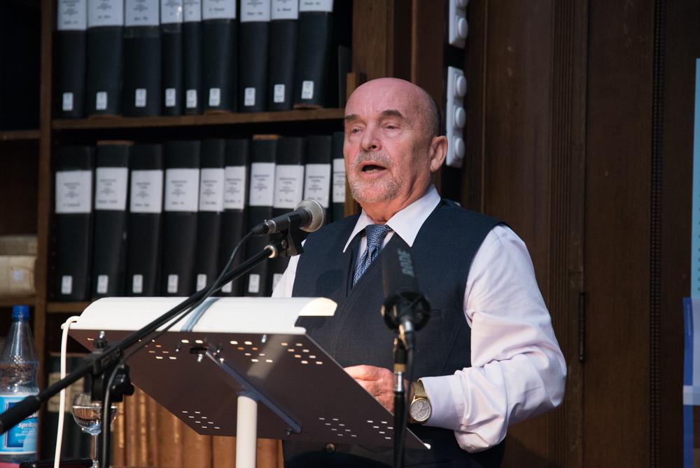 Karl-Heinz B. van Lier würdigte Rainer Eppelmann als Zeitzeugen, der die Zeit der SED-Diktatur der Jugend plastisch nahebringt. Dennoch sei er nicht nur Zeitzeuge, sondern aktiver Gestalter der Umstände gewesen, und heute noch aktiv gegen das Vergessen im Einsatz, lobt van Lier.