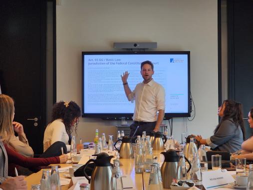In einem Rechtsworkshop mit Herrn Philipp Bremer, Leiter des KAS-Rechtsstaatsprogramms für den Nahen Osten und Nordafrika, wurden Fallbeispiele aus dem Libanon und Deutschland vorgestellt. Dieser Workshop ermöglichte der Gruppe einen näheren Blick auf die deutsche Perspektive, insbesondere bei der Behandlung rechtlicher Themen und Fragen, und betonte die Bedeutung von Forschung und fundierten Entscheidungen.