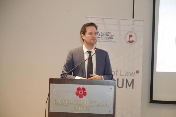 Um 9:00 Uhr begann die Veranstaltung mit Eröffnungsstatements von Herrn Philipp Bremer, Direktor des Rechtsstaatsprogramms der Konrad-Adenauer-Stiftung für den Nahen Osten und Nordafrika, Rechtsanwalt Rany Sader, Präsident der SADER-Stiftung, und Konsul Matthias Voigt, der den deutschen Botschafter im Libanon, S.E. Andreas Kindl, vertrat.