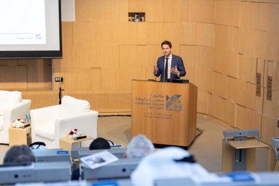 Die Veranstaltung begann mit Eröffnungsworten von Professor Damilola S. Olawuyi, UNESCO-Lehrstuhl für Umweltrecht und nachhaltige Entwicklung, und S.E. Ibrahim bin Ali Al Mohannadi, Justizminister und Staatsminister für Kabinettsangelegenheiten in Katar. Nach der herzlichen Begrüßung erhielten die Zuhörer Grußbotschaften von Philipp Bremer, Leiter des KAS-Rechtsstaatsprogramms für die MENA-Region, Me. Rany Sader, Präsident der Youssef SADER Foundation, Dr. Susan Karamanian, Dekanin des College of Law der HBKU, und dem deutschen Botschafter in Katar, S.E. Lothar Freischlader. Damit wurde ein gemeinsamer Ton für das FORUM gesetzt, der das regionale Engagement für die Förderung von Rechtsstandards und nachhaltiger Entwicklung unterstrich.