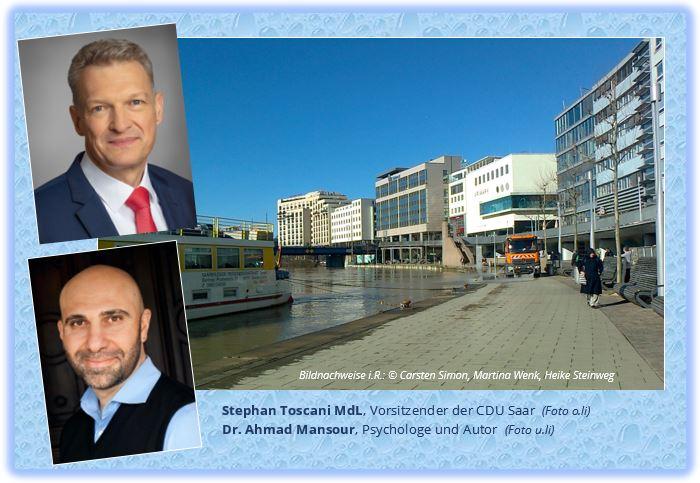 Über diese Fragen sowie Fragen aus den Bereichen Flucht, Migration, Zuwanderung und Integration sprechen Stephan Toscani MdL, Landesvorsitzender der CDU Saar, und der deutsch-israelische Psychologe und Autor Dr. Ahmad Mansour. Als Jugendlicher hatte Ahmad Mansour in seinem Heimatdorf bei Tel Aviv eine islamistische Lebensphase. Heute engagiert er sich mit Projekten und Initiativen für demokratische Werte, Toleranz und Meinungsfreiheit sowie gegen Radikalisierung, Extremismus, Gewalt, Islamismus und Antisemitismus.