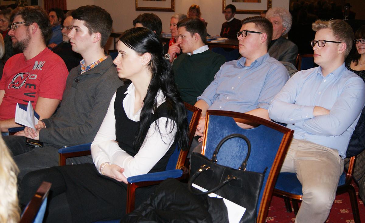 Die interessierte v.a. die personelle Struktur der KAS. In Deutschland arbeiteten bei der Stiftung rund 550 Menschen. 90 seien aus Deutschland in Auslandbüros entsandt und in jedem Auslandbüro arbeiten weitere fünf bis sechs Mitarbeiter aus dem jeweiligen Land. Die KAS habe insgesamt rund 1200 bis 1500 Mitarbeiter, so Priess. Die Leitlinien bestimme die Satzung der Stiftung. Auch die Arbeit der KAS im pazifischen Raum wurde angesprochen. Man stehe im Austausch mit Australien und Neuseeland. Ein Büro in Australien sei schwer zu finanzieren, denn in Australien müsse keine Entwicklungshilfe geleistet werden. In Japan und Singapur habe man Programme und in China sei man gar an zwei Standorten vertreten. In Peking kümmere man sich eher um politische Belange, in Shanghai stehe die Wirtschaft im Mittelpunkt der Arbeit. Auch in Hongkong und in Südkorea seien Mitarbeiter. Neu eröffnet wurde ein Büro in Myanmar. Die Gäste wollen wissen, ob sich noch genug Menschen finden, die für die Stiftung im Ausland arbeiten wollen. Priess räumt Rekrutierungsprobleme ein. Er sieht den Grund in den Doppelakademikerehen. „Wenn einer sich fürs Ausland interessiert, ist die Frage, ob der Partner dort auch was machen kann?“ Außerdem hätten viele junge Leute ihre Auslandserfahrungen schon vor dem Einstieg ins Berufsleben gesammelt. Für bestimmte Standorte, wie Peking, sei es einfach schwer jemanden zu finden, weil es dort enorme umweltpolitische Schwierigkeiten gibt. Kein Mitarbeiter bleibe länger als fünf Jahre an einem Standort. Oft sprechen die Auslandsmitarbeiter die Sprache des Landes, in dem sie arbeiten. „Der Kollege in China hat Sinologie studiert, er spricht chinesisch.“ Es gebe aber auch Länder, in denen die Mitarbeiter einen Dolmetscher benötigen. „Wir fördern Sprachkurse schon in Deutschland.“ Noch bei einem kleinen Empfang im Anschluss an die Veranstaltung stellen die Gäste interessiert Fragen an Priess.
