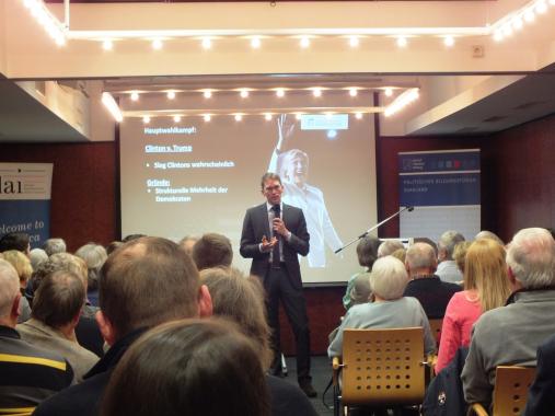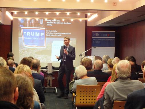 Nach dem "Super-Tuesday" blickte USA-Experte Dr. Florian Böller im Hotel La Residence auf voll besetzte Stuhlreihen, als er zum aktuellen Stand des Vorwahlkampfes in den Vereinigten Staaten referierte.